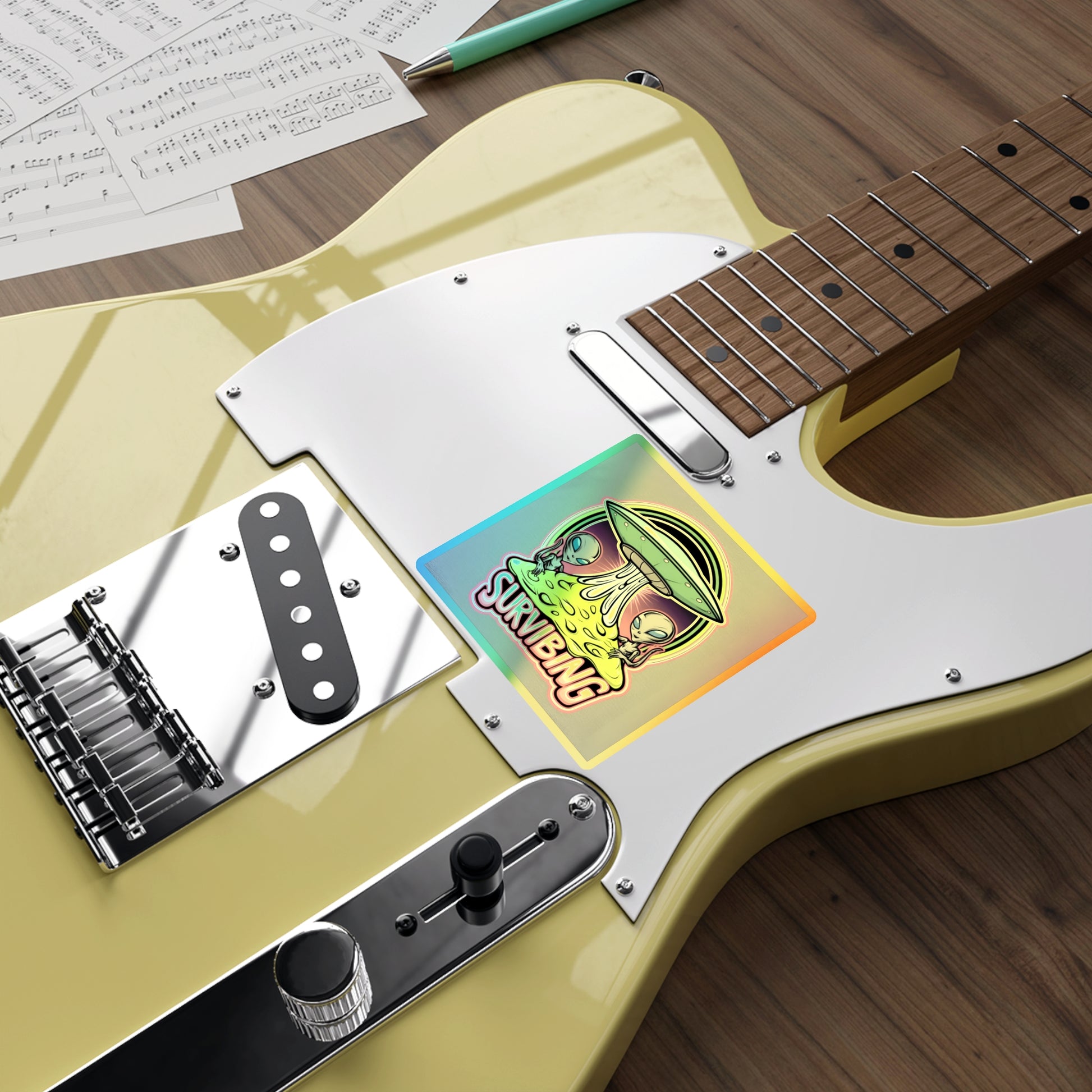Holographic Alien Die-Cut Stickers - Fun 'Survibing' Design for Trendy Decor